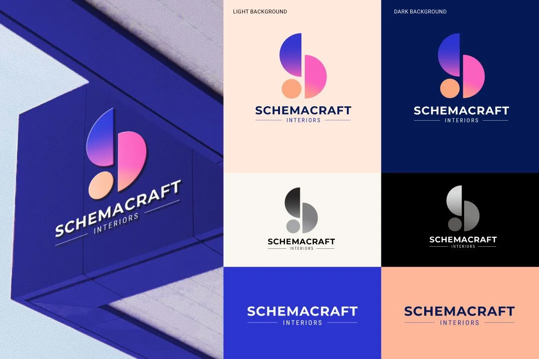 The result is a bold, refined new logo and brand system that channels the essence of Schemacraft’s design philosophy: fluidity, precision, and vibrant imagination. The logo’s central “S” contour has been abstracted into a flowing graphic signature — paired with a shifting tri-colour gradient that begins in deep navy (signifying professionalism and design integrity), blooms into soft fuchsia (creativity, warmth, youth), and concludes in a grounded circular element — a symbol of stability, focus, and strength.